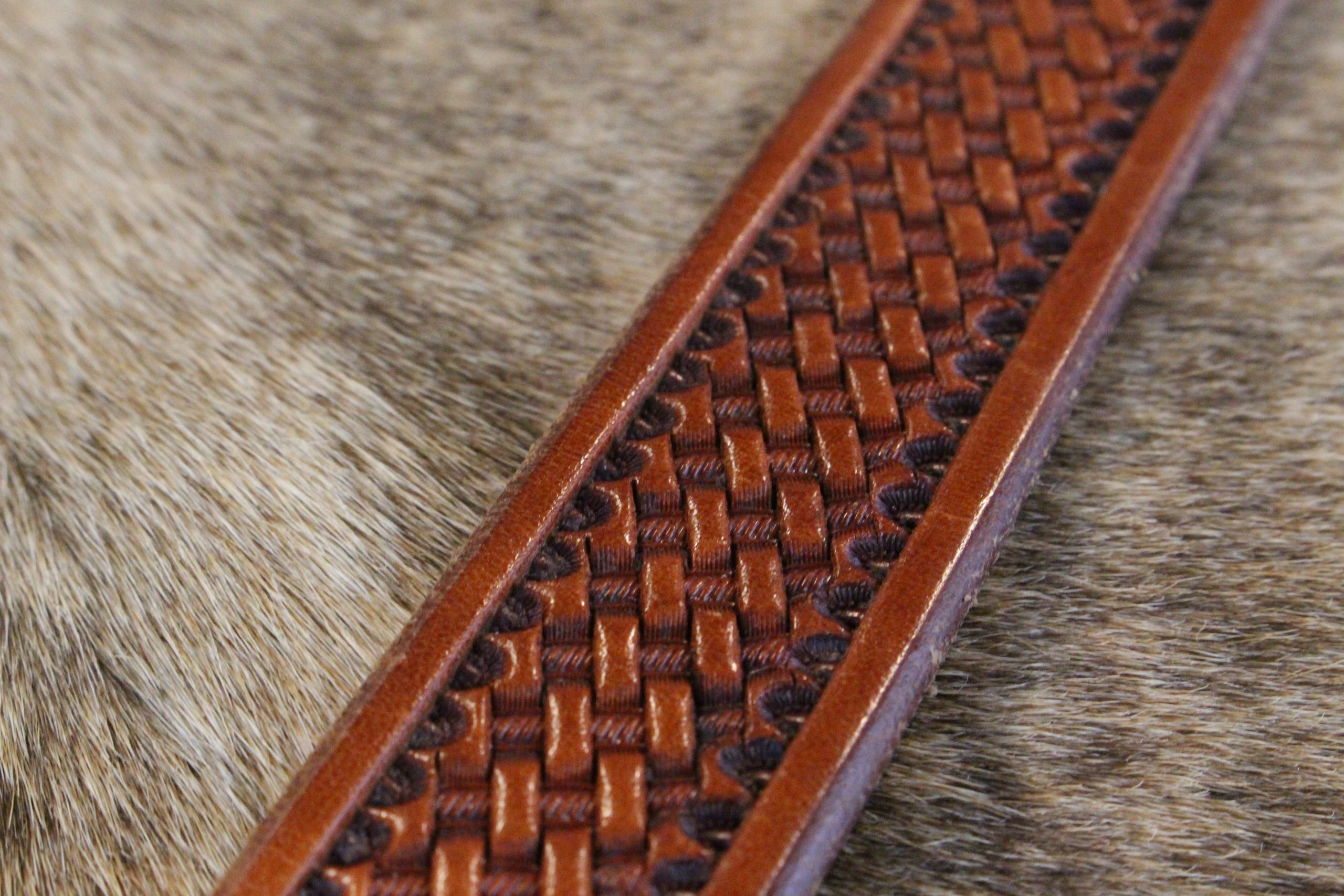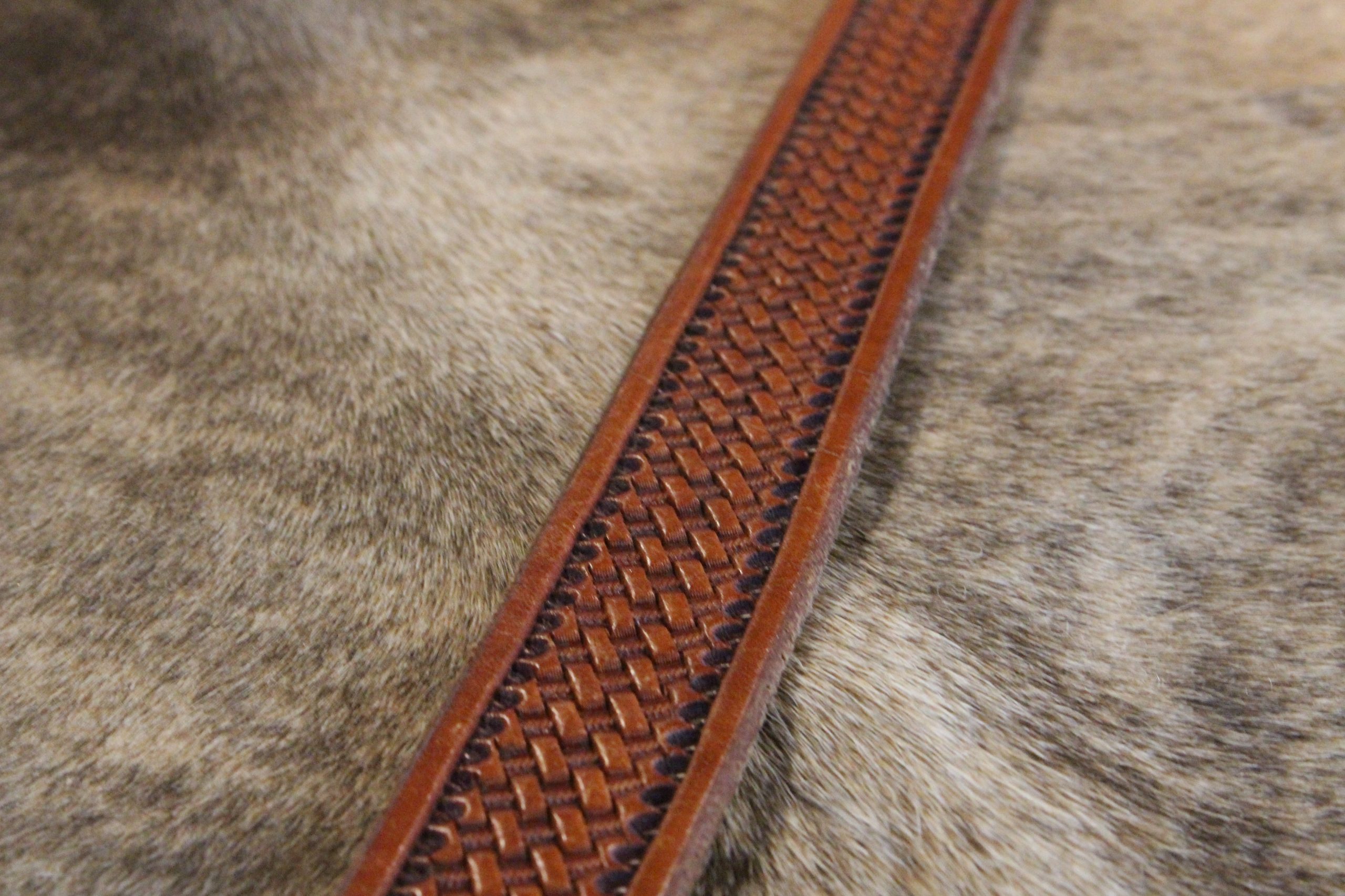 **Note:  If this add-on is selected, we will use 8/9 oz Oak Leaf Tooling Leather instead of 8/9 oz Herman Oak Harness Leather.  The leather will then be oiled AFTER we basket-stamp your strap.